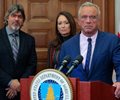 U.S. HHS Sec'y Robert F. Kennedy Jr., USDA Sec'y Brooke Rollins, and Calif. farmer Blake Alexander (L) during the announcement of a pilot program to support regenerative agriculture at the USDA - Dec. 10, 2025 in Washington, D.C. The new program will support urban and rural farmers to increase soil health and nutrient density, in line with MAHA. (Photo by Chip Somodevilla/Getty Images)