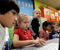 Kindergartner Lauren Meek, second left, works with a pair of second graders during their weekly computer science lesson at Marshall Elementary School in Marysville, Wash. (Elaine Thompson/AP/2018 file)