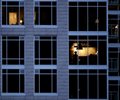 house with lights on, person up, late at night