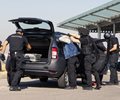 Anarchists used long, strong straps to dislodge a gun vault from an ICE vehicle.