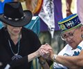 "They do their drilling and fracking in areas where people are economically depressed," she said. "They create child care centers and recreational parks and they build schools and they try to buy them off. But we, again, are confronting an existential crisis. It's not just the tribal nations here. It is the globe. We have to stop all new oil development. We cannot allow this to happen. It's not just for us living today. It's for our grandchildren and our children."