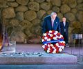 During his visit, Huckabee laid a wreath in the Hall of Remembrance, bearing the inscription of the U.S. embassy in Jerusalem.