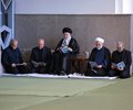 Image provided by Iranian Leader's Press Office, Iranian Supreme leader Ali Khamenei (C) is seen alongside Iran's President Masoud Pezeshkian (L), Parliament Speaker Mohammad Bagher Ghalibaf (2L), Judiciary Chief Mohsen Ejeie (2R) and Hezbollah representative in Iran Abdallah Safieddine (R) - Oct. 4, 2024 in Tehran, Iran. (Iranian Leader's Press Office - Handout/Getty Images)